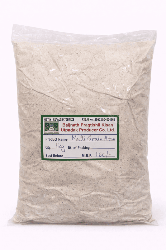 Farm-fresh Multigrain Atta, naturally grown without chemical pesticides. Stone-ground/hand-sorted by farmer families. Sourced directly from Himalayan farmer cooperatives (FPOs) under the Harvesting Farmer Network. Wholesome nutrition from Himalayan soil.