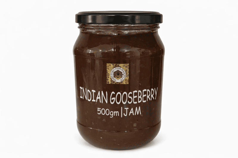 Homemade Amla Jam 200g crafted from fresh Himachali fruits. Low sugar, no artificial flavors. Sourced directly from Himalayan farmer cooperatives (FPO...