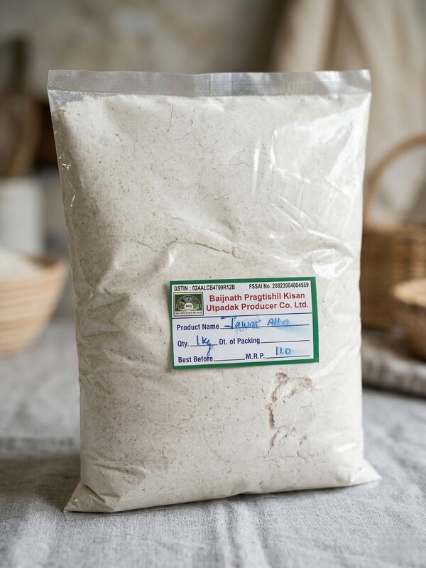 Farm-fresh Jwar Atta, naturally grown without chemical pesticides. Stone-ground/hand-sorted by farmer families. Sourced directly from Himalayan farmer cooperatives (FPOs) under the Harvesting Farmer Network. Wholesome nutrition from Himalayan soil.