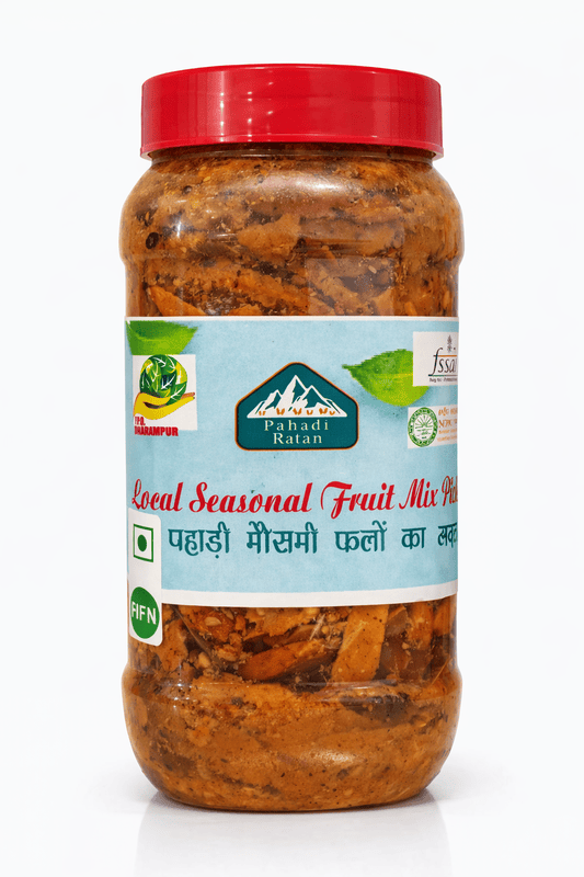 About Product : Enjoy the traditional taste of the hills with Pahadi Rattan Lsooda Achar 400g, made from fresh Lasoda (glue berry) and authentic Indian spices. Known for its unique texture and tangy flavor, this pickle is a popular delicacy in Pahadi cuisine. Prepared using natural ingredients and traditional methods, it adds a rich and flavorful touch to your meals. Perfect as a side dish, it enhances the taste of everyday food with its authentic and bold flavor. A must-have for those who love regional and traditional pickles. Product Name: Pahadi Rattan Lsooda Achar Source : The Dharampur Kisan Utpadak Sahkari Sabha Samiti Net Quantity: 400g Type: Pickle (Achaar) Flavor: Tangy & Spicy Usage: Side Dish with Meals No Added Artificial Preservatives Product Benefits : Enhances taste of meals Supports digestion Made from natural ingredients Traditional and authentic flavor Storage Instructions : Store in a cool and dry place Keep jar tightly closed Use a dry spoon Refrigerate after opening (optional)