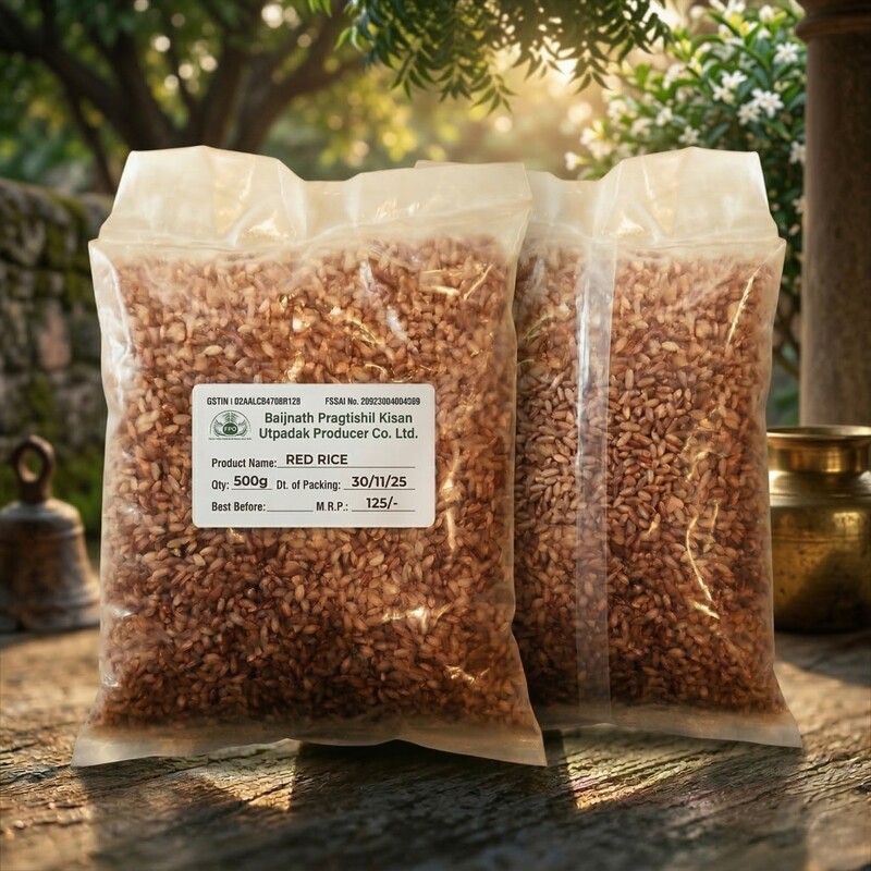 About Product : Red Rice is a nutritious and traditional grain known for its natural color and rich taste. Unlike polished white rice, it retains its outer bran layer, making it high in fiber and essential nutrients. It is a healthy alternative for everyday meals and supports a balanced diet. Easy to cook and versatile, red rice can be used in a variety of dishes, adding both taste and nutrition to your plate. A wholesome and healthy choice for your kitchen. Product Name: Red Rice Source : Baijnath pragatishil Kisan Utpadak Producer Company Limited Net Quantity: 500g Type: Whole Grain Rice Processing: Unpolished Usage: Daily Cooking No Added Preservatives Product Benefits : Supports digestion Rich in fiber and nutrients Helps in weight management Provides sustained energy Storage Instructions : Store in a cool and dry place Keep in an airtight container Protect from moisture and pests Wash before cooking