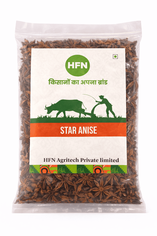 About Product : Star Anise, also known as Chakri Phool, is a popular spice known for its unique star shape and strong aroma. It adds a sweet and slightly spicy flavor to a variety of dishes. Used in both savory and sweet recipes, it enhances the taste of curries, biryanis, desserts, and beverages like tea. This natural and pure spice is a must-have ingredient in every kitchen. A perfect choice for adding rich flavor and aroma to your cooking. Product Name: Star Anise (Chakri Phool) Source : HFN Net Quantity: 100g Type: Whole Spice Form: Whole Usage: Cooking, Tea, Spice Blends No Added Preservatives Product Benefits : Enhances flavor and aroma Supports digestion Natural and pure ingredient Versatile usage in cooking Storage Instructions : Store in a cool and dry place Keep in an airtight container Protect from moisture