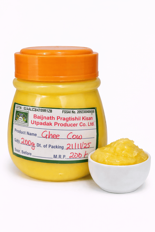 Experience the richness of tradition with Cow Ghee 200g, made from pure cow milk using time-tested methods. Known for its golden color, rich aroma, and authentic taste, this desi ghee enhances both flavor and nutrition in your meals.